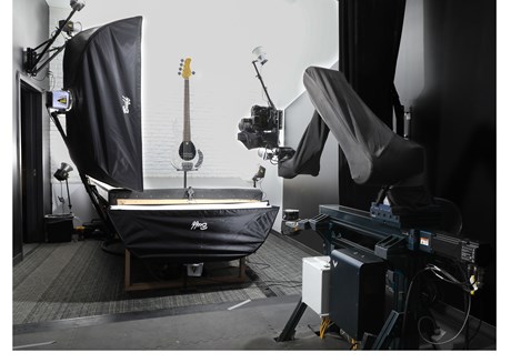 Supporting its retail division, Sweetwater photographs over a thousand guitars daily, each requiring eight or more detailed shots. The original process relied on heavy nine-pound cameras, causing significant fatigue for photographers and forcing rotations every four hours to combat this issue. With four guitar photography studios operating at full capacity and no space to expand, Sweetwater faced a critical challenge: how to increase photo capacity and efficiency to meet growing demand without compromising quality while still ensuring photographer safety.
